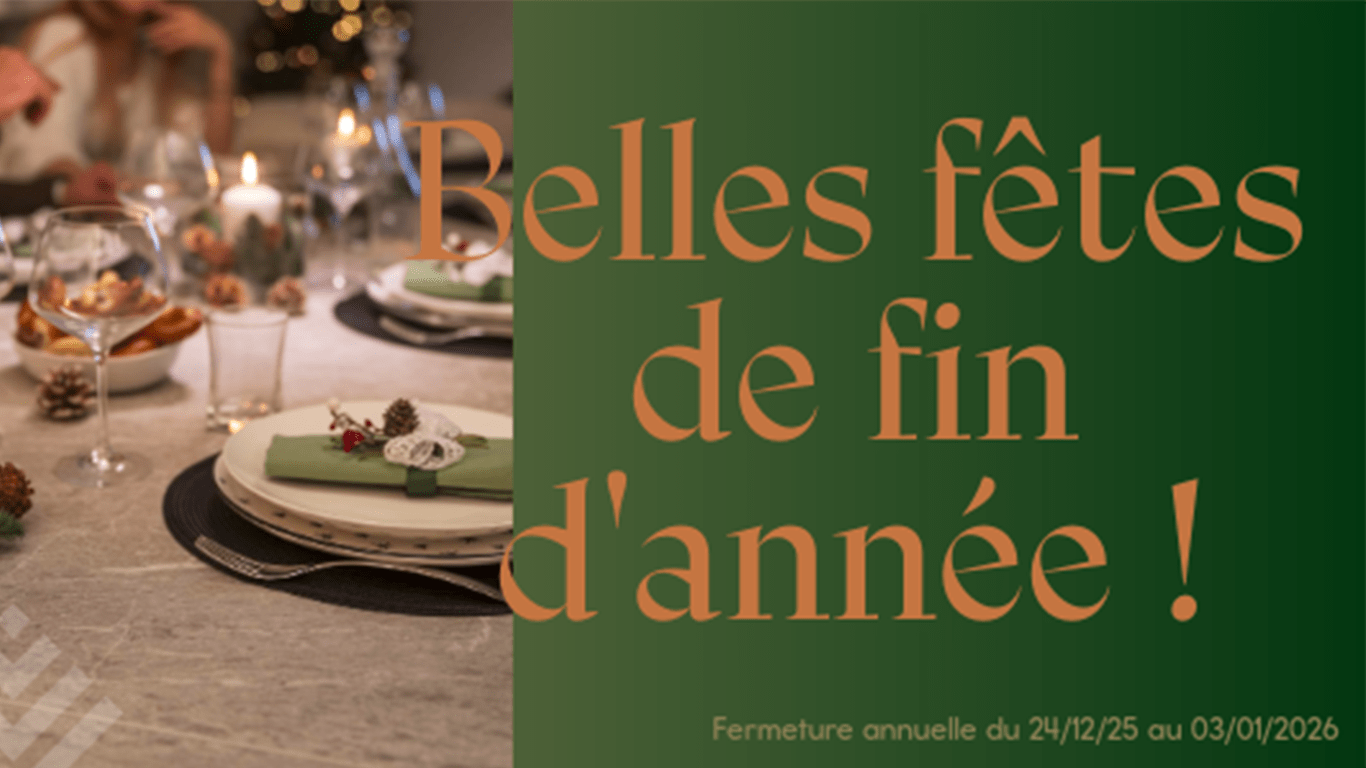 Nous vous informons que nous serons fermés du 24 décembre 2025 au 3 janvier 2026.