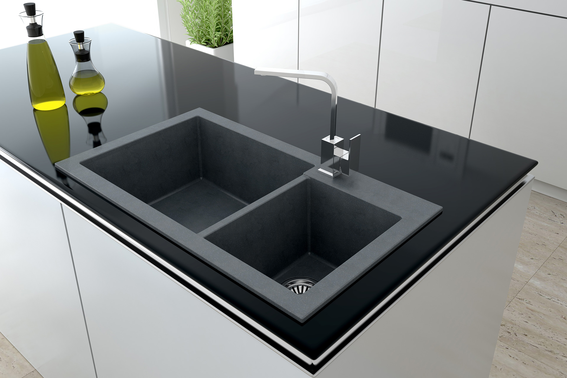 Cuve AMELIA 25, matière Intergranit +, 2 cuves, livré avec vidage manuel et siphon