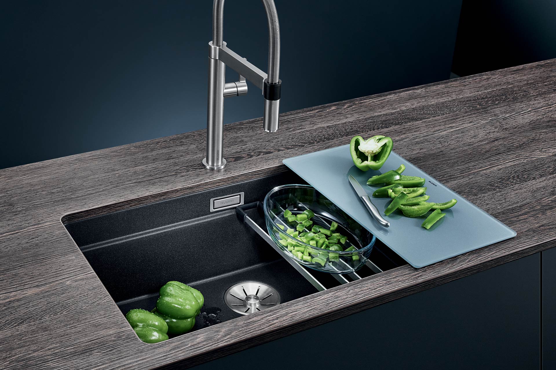 La collection ETAGON est composée de cuve à encastrer et sous plan. Elle est fabriquée par notre partenaire BLANCO®. Fonctionnelle, robuste et facile d’entretien, cette collection répond au besoin de la cuisine. La cuve ETAGON 700 U s’installe dans un sous évier de 80. Sa bonde InFino® apporte une touche design et ces accessoires (deux rails) remplacent un égouttoir. Découvrez l’ensemble des cuves ETAGON et retrouvez cette collection dans un choix de pack évier-mitigeur, dans notre catalogue L’Essentiel de la cuisine
