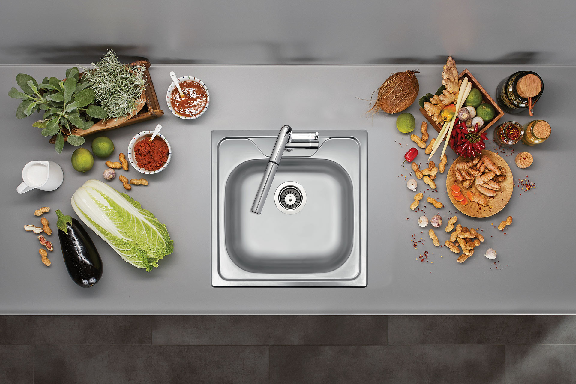 La cuve OLMA est pensée pour les petits espaces. Elle s’installe dans un sous-évier de 45. Grâce à sa plage percée pour installer un mitigeur, elle peut s’encastrer sur tous les types de plan de travail. La cuve OLMA est durable et très resistante par sa