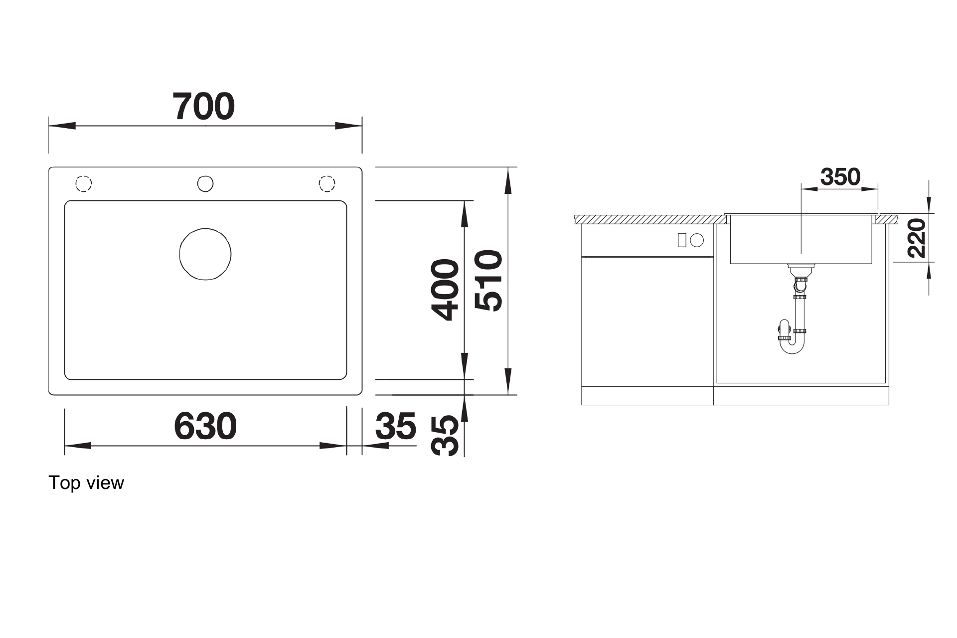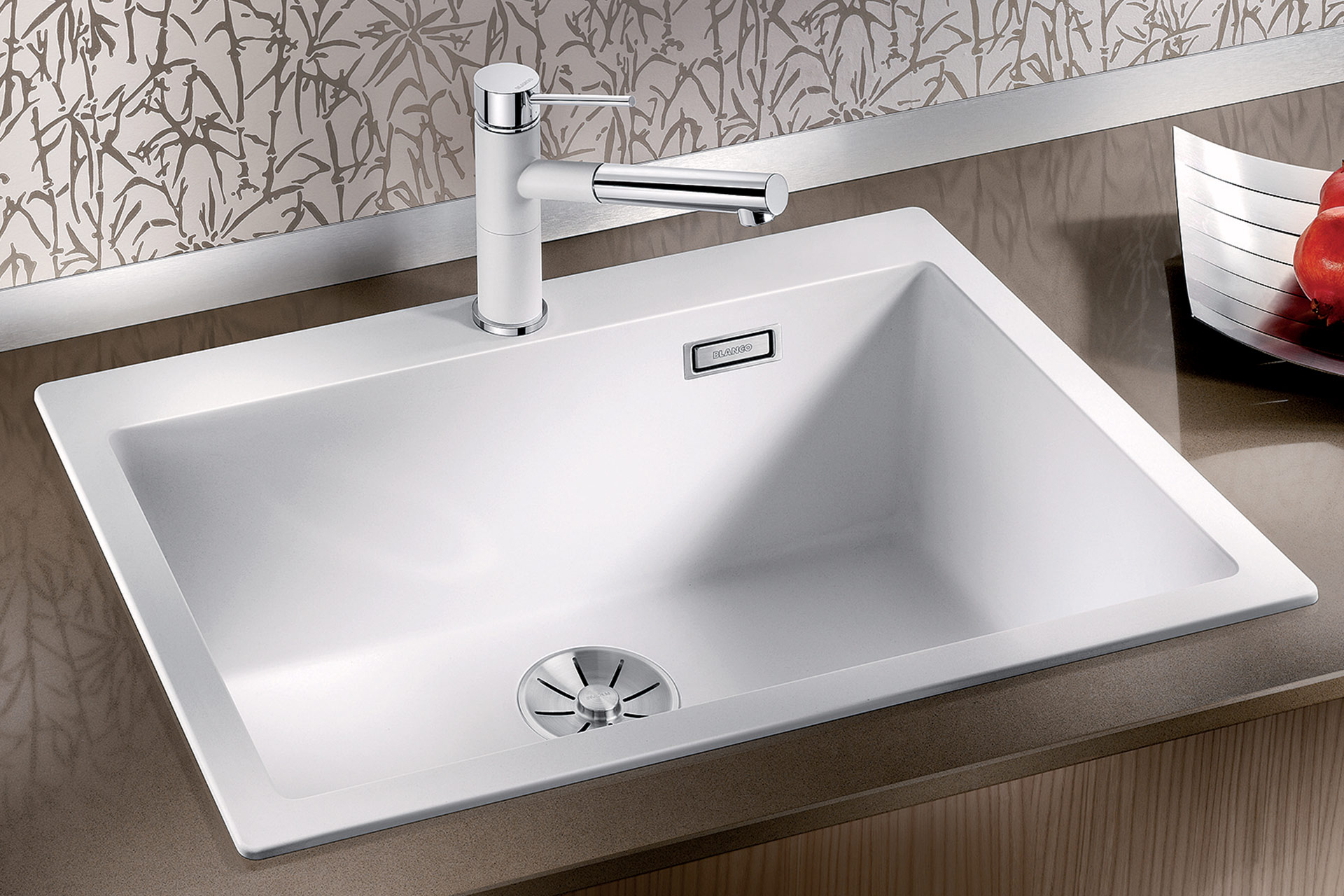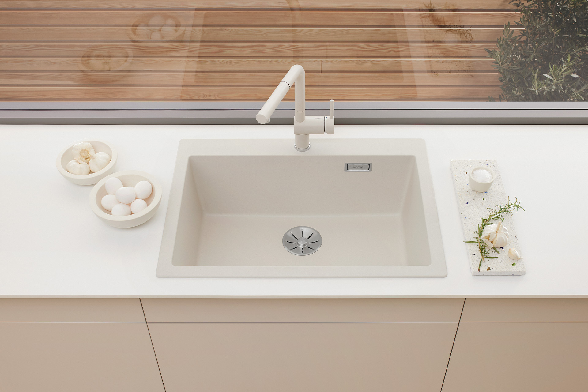 Cuve PLEON 80, matière Silgranit®, 1 cuve, livré avec vidage manuel et siphon, équipé d’une bonde InFino®