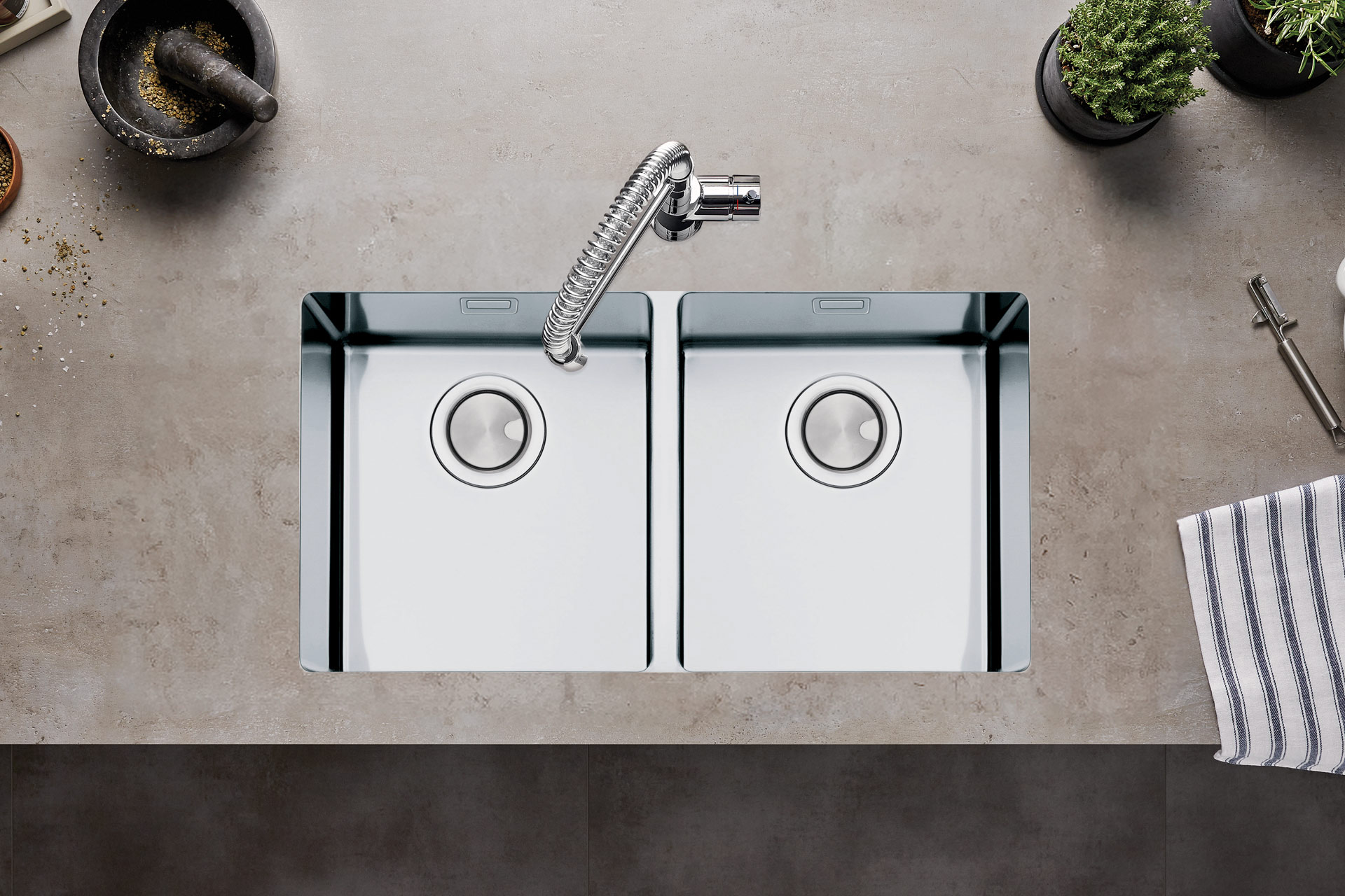 La collection SEGMA est modulable, sombre et épurée. La SEGMA 3434 est une cuve sous plan, compatible avec un sous évier de 80. Elle se démarque par ses doubles cuves identiques. Son inox lisse, sa bonde design et ses angles R15 donnent un aspect haut de gamme à cette cuve abordable. Découvrez l’ensemble des SEGMA et retrouvez cette collection dans un choix de packs évier-mitigeur, dans notre catalogue catalogue L’Essentiel de la cuisine