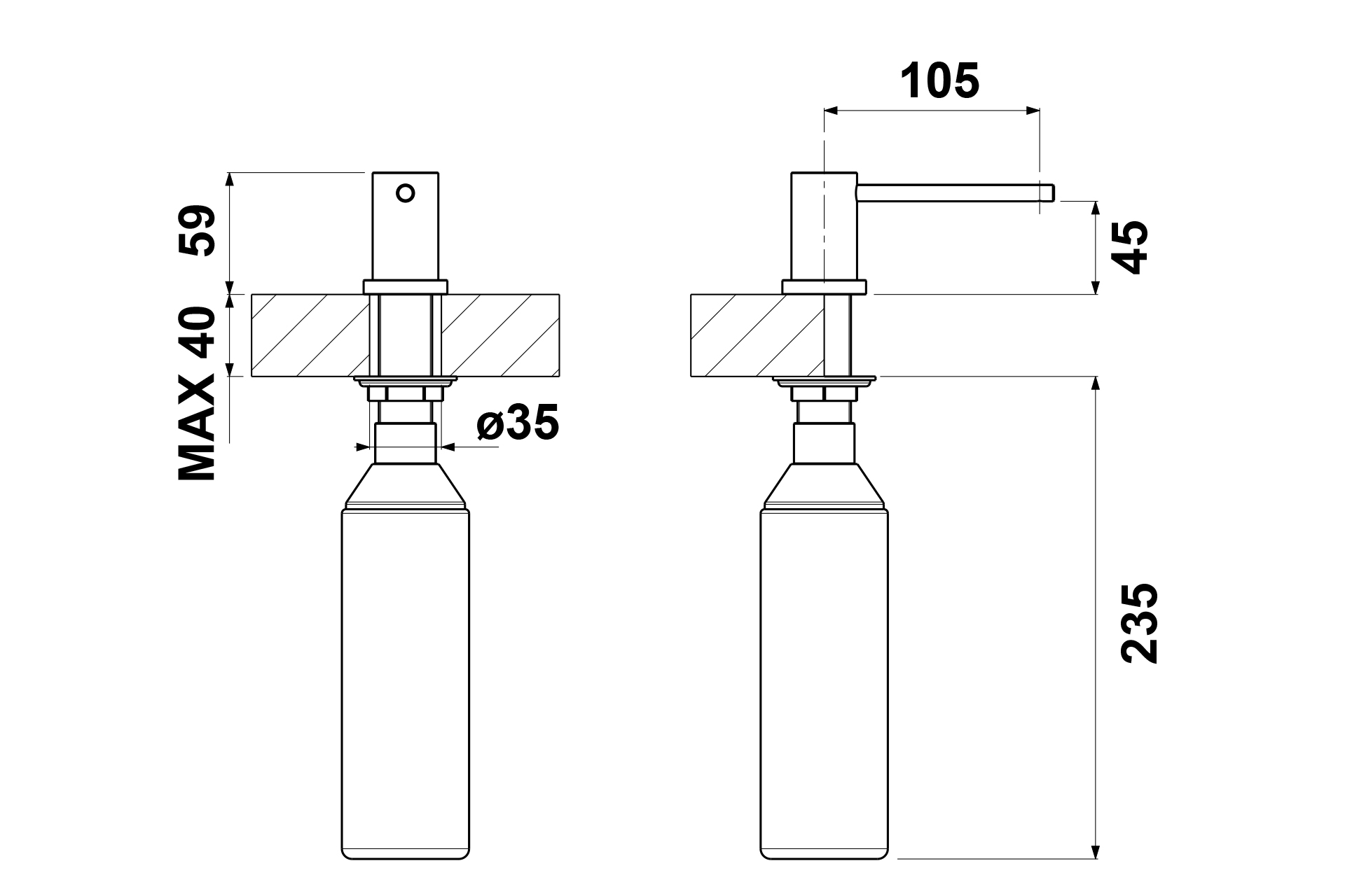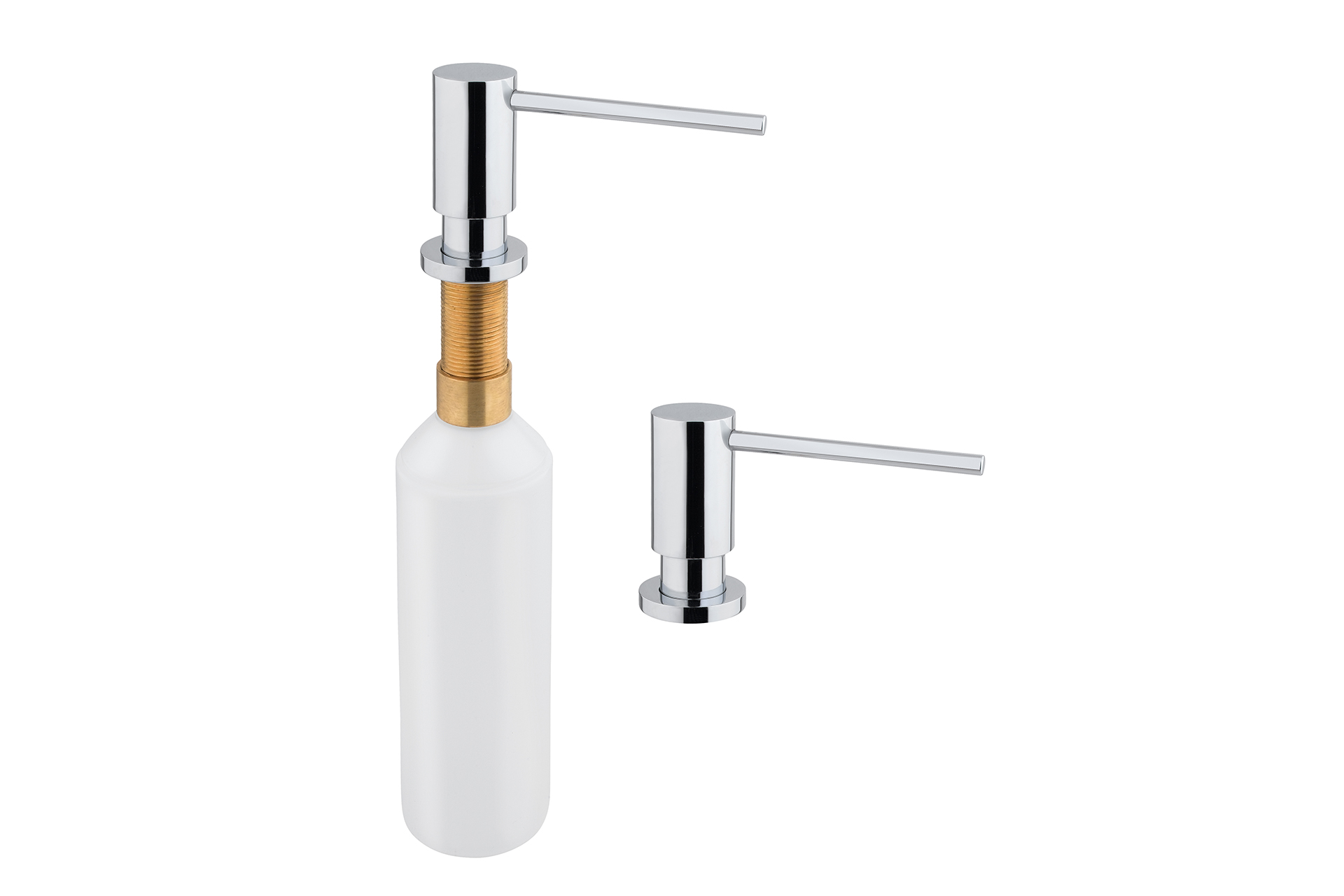 Distributeur à savon à encastrer MALDO. Ce distributeur à savon s’encastre dans un plan de travail ou sur une plage d’évier. Il est de finition chromé pour se fondre dans la cuisine et simplifier son entretien. Son réservoire a une capacité de 500ml. Pour l’installer un perçage de Ø 35mm est requis. Nous vous conseillons de diluer le savon et de remplir le réservoir par le haut (sans dévisser le réservoir).