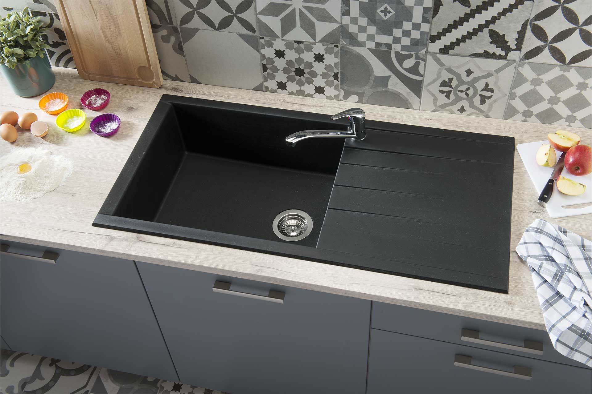 La collection CUBA est intemporelle et économique. L’évier CUBA XL est réversible et s’installe sur un sous-évier de 60. La taille de sa cuve simplifie les usages quotidiens. L’évier est livré avec son vidage. Découvrez l’ensemble des CUBA et retrouvez cette collection dans un choix de packs évier-mitigeur, dans notre catalogue catalogue L’Essentiel de la cuisine