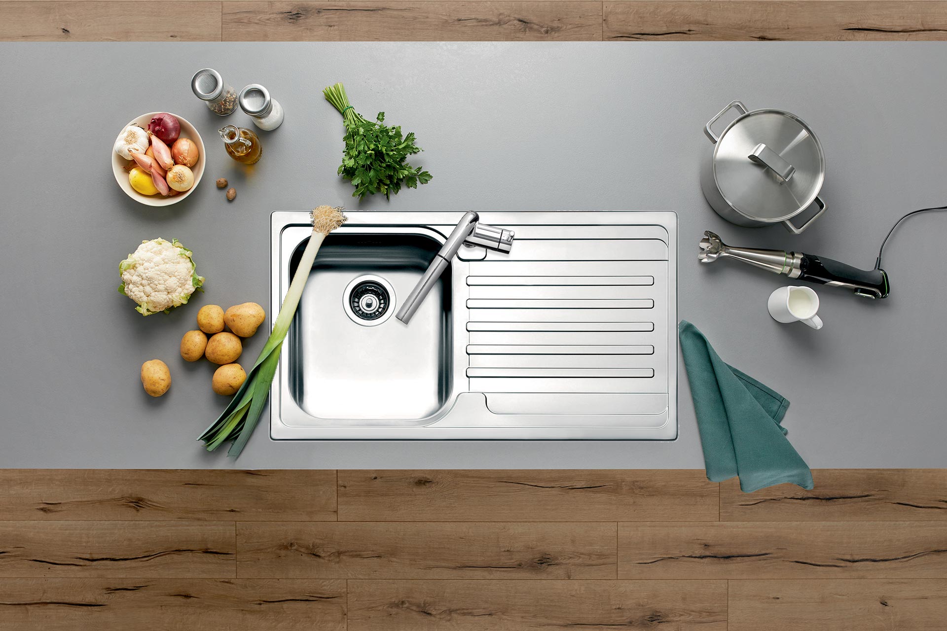La collection VELIS est au design classique français. Son inox nid d’abeille est une finition indémodable française. Cette finition à l’avantage de rendre moins visible les rayures sur l’inox. L’évier VELIS 10 n’est pas réversible. Il existe dans une version égouttoir gauche et égouttoie droite. Le VELIS 10 s’installe sur un sous-évier de 45. L’évier est livré avec un vidage manuel. Cet évier est idéal pour aménager un petit espace ou pour un logement en location. Découvrez l’ensemble des VELIS.