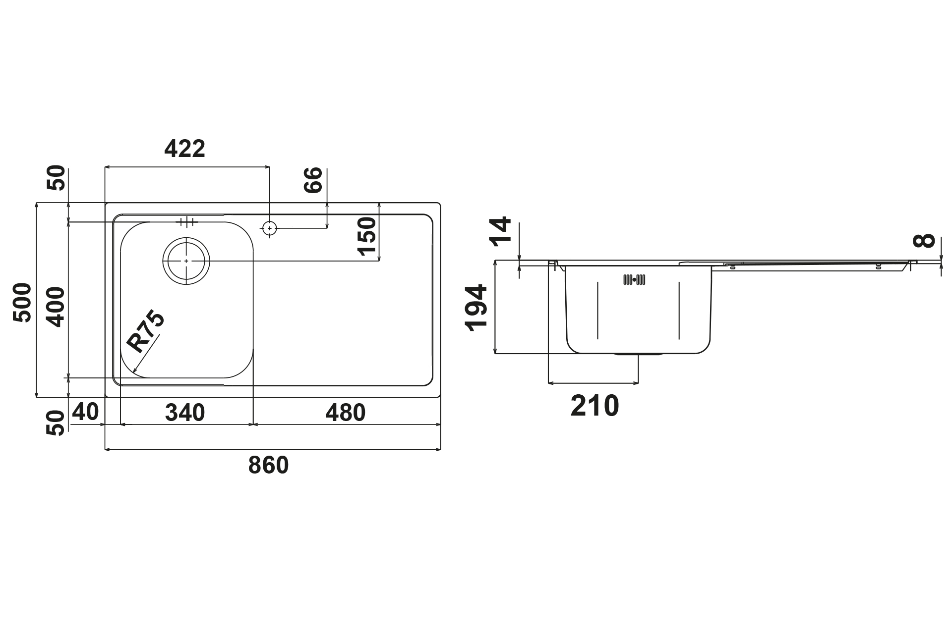 Evier VELIS 10, matière Inox nid d’abeille, 1 cuve, livré avec vidage manuel et siphon