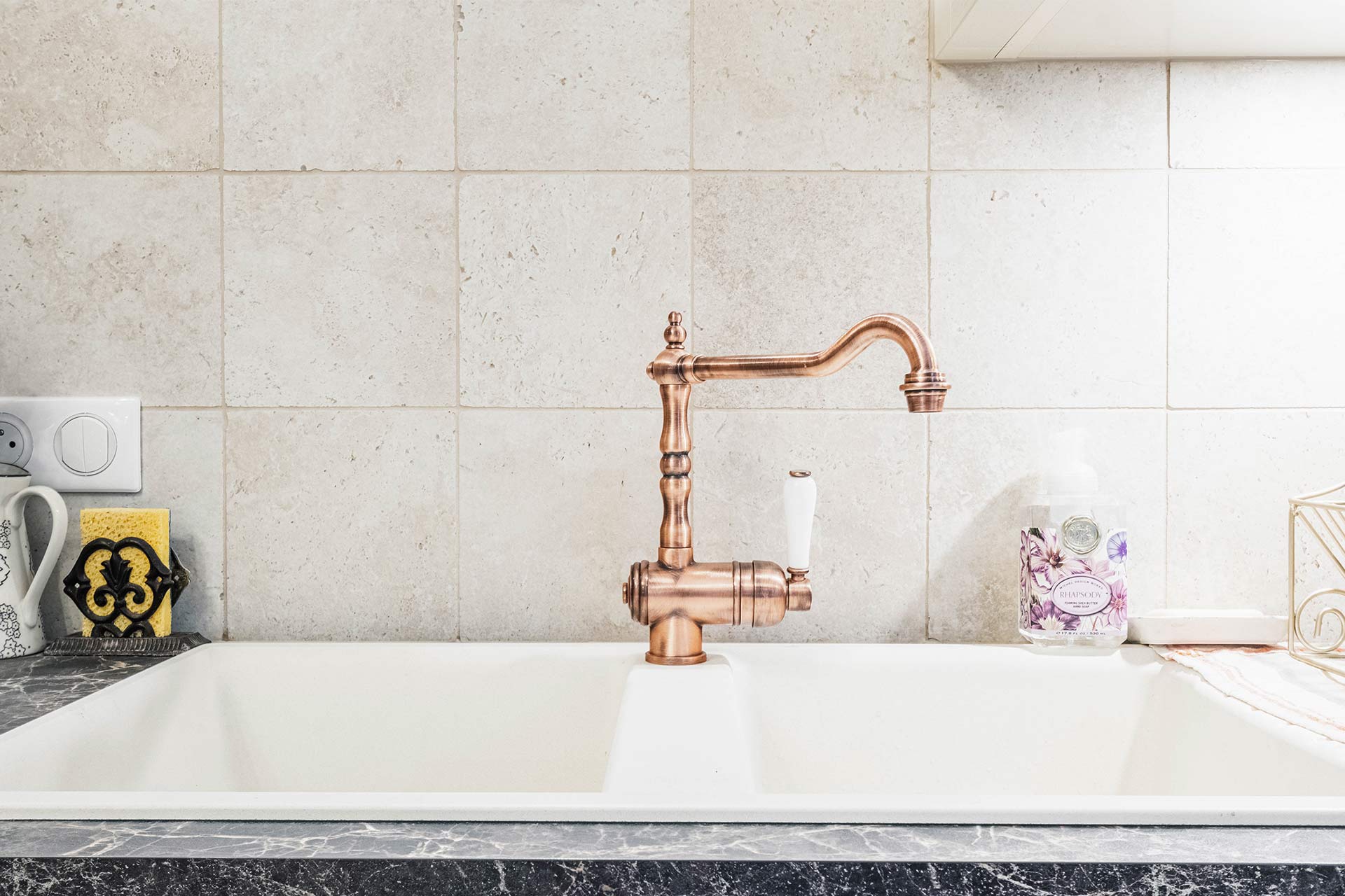 Le mitigeur 14500, est un classique de la robinetterie de cuisine. Il se présente avec un bec en forme de L pour remplir facilement les grands récipients. Il est orné de forme ronde pour rappeler les motifs du fer forger et des encadrements anciens. Sa manette en céramique blanche marque immédiatement le style maison de campagne. De plus il est décliné en plusieurs finitions qui soulignent l’appartenance à une ancienne époque. Le 14500 existe aussi en version sous-fenêtre. Retrouver ce mitigeur dans notre catalogue complet catalogue L’Univers de la cuisine.
