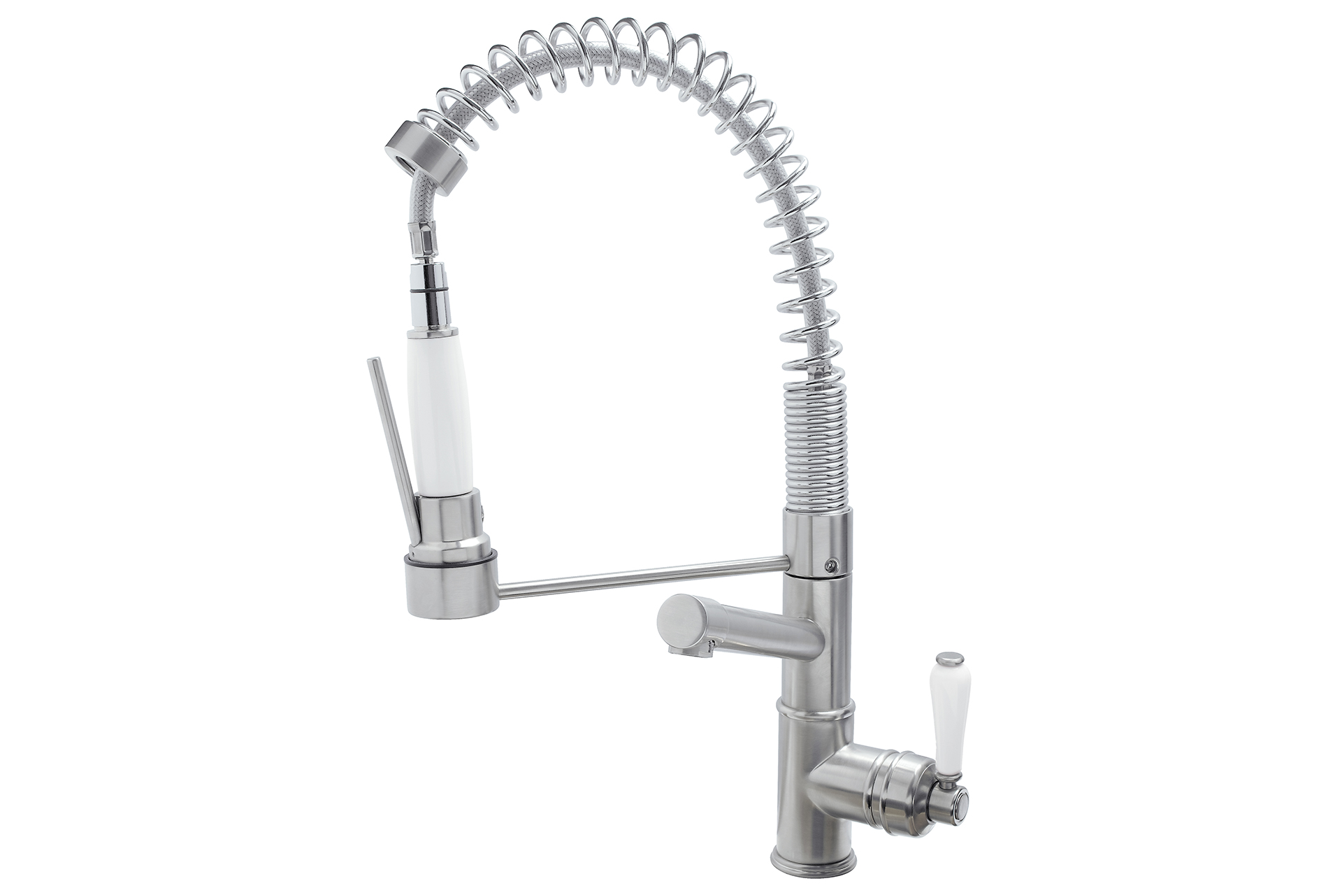 Le mitigeur BABYRETRO est un robinet qui mêle ambiance rétro et l’ergonomie des mitigeurs professionnels. En effet, il garde la douchette ultra maniable avec ses ressorts et la double sortie d’eau des robinets professionnels. Et il arbore des manettes en céramique blanche et une finition patinée pour plus de cachet. Véritable hybride le mitigeur BABYRETRO est idéal dans une cuisine style campagne pour un foyer familiale ou de cuisinier amateur. Retrouver ce mitigeur dans notre catalogue complet catalogue L’Univers de la cuisine.