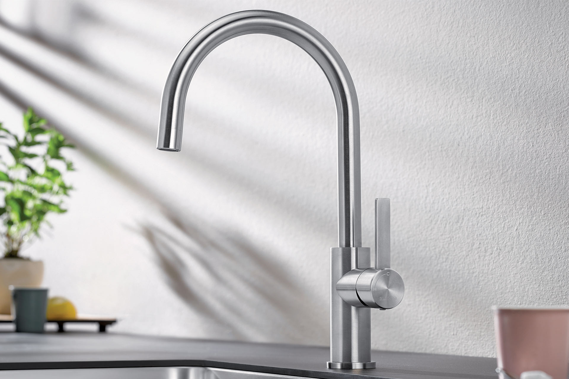 Le mitigeur CANDOR est un mitigeur de cuisine de la marque BLANCO®. Conçu en acier inoxydable massif, ce mitigeur se démarque par sa qualité haut de gamme. Grâce à sa canne haute, vous pouvez facilement remplir des grandes casseroles d’eau. Son aspect Inox brossé lui donne un look très contemporain malgré sa forme classique. Le mitigeur CANDOR peut être installé contre un mur. Sa manette s’ouvre de manière laterale puis vers la cuve pour l’eau chaude. Découvrez toute la collection CANDOR sur notre site. Et retrouvez sur notre catalogue catalogue L’Essentiel de la cuisine ce mitigeur dans un choix de pack évier-mitigeur.