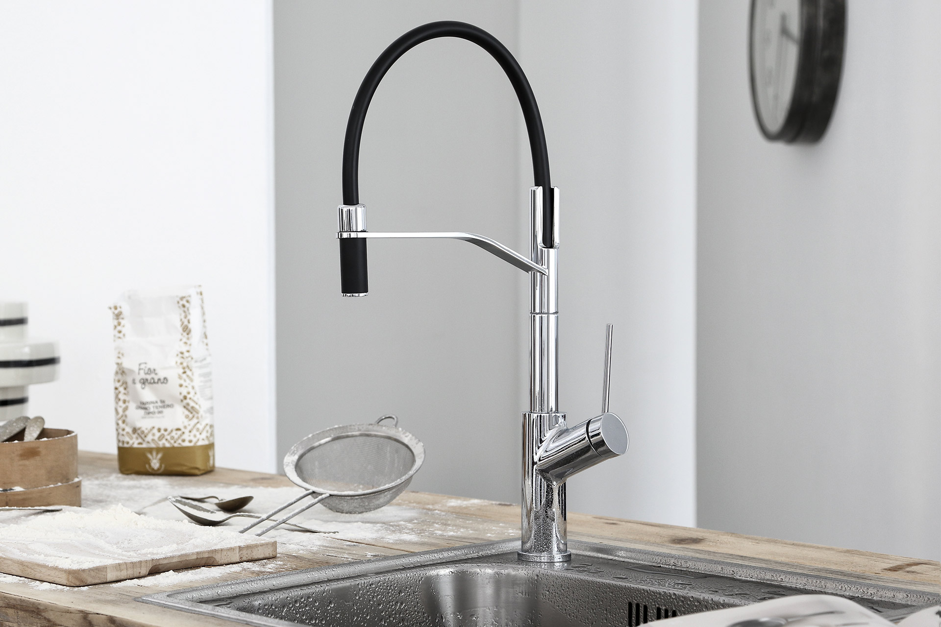 Le mitigeur CARDONPRO plaît par son design soigné et intemporel. Sa douchette au format professionnel a une finition noir. Ainsi, le CARDONPRO est un mitigeur professionnel qui se distingue grâce à la finition de sa douchette. Pensée pour son usage en cuisine, son bec est haut et sa douchette amovible, simplifient le remplissage de grand récipient. Son corps dessine un « V » pour accueillir la manette ultra fine. Disponible en deux finitions (chromé ou inox brossé) ce mitigeur s’intègre dans toutes les cuisines! Retrouver ce mitigeur dans notre catalogue complet catalogue L’Univers de la cuisine.