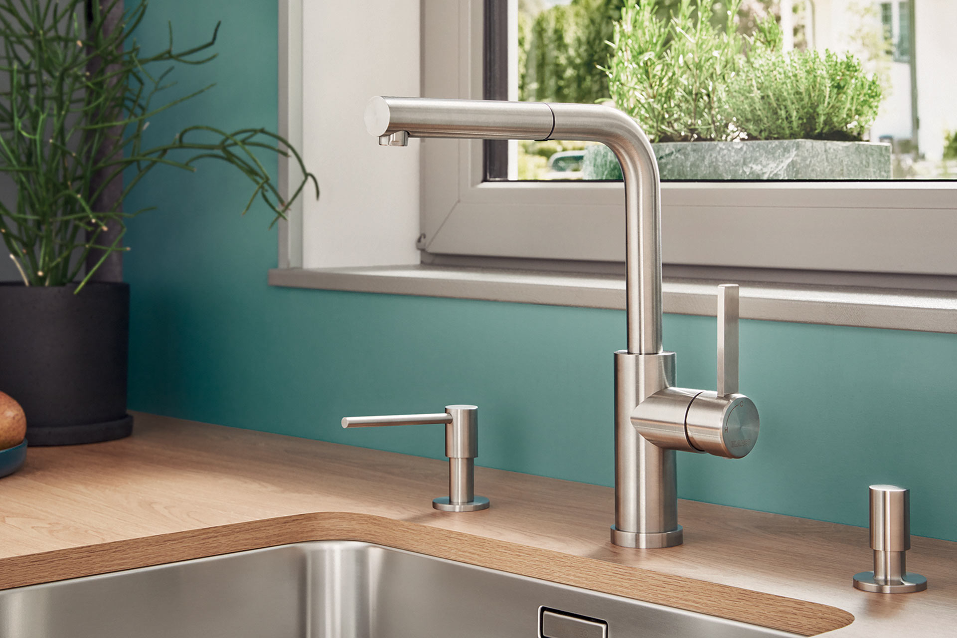 Le mitigeur LANORA-S est un robinet de cuisine de la marque BLANCO®. Le LANORA-S se démarque par son design haut de gamme. En effet, il est fabriqué en inox massif brossé et ses lignes épurées lui donne un look moderne. Sa forme « L » haute permet de remplir facilement casseroles, vases…De plus sa douhette extractible vous permet de nettoyer avec aisance. Et son bec rotatif à 180° donne une liberté de mouvement. Autre avantage du LANORA-S c’est qu’il peut être installé contre un mur grâce à sa manette (position de base à la verticale). Découvrez toute la collection LANORA sur notre site. Retrouvez sur notre catalogue catalogue L’Essentiel de la cuisine ce mitigeur dans un choix de pack évier-mitigeur.