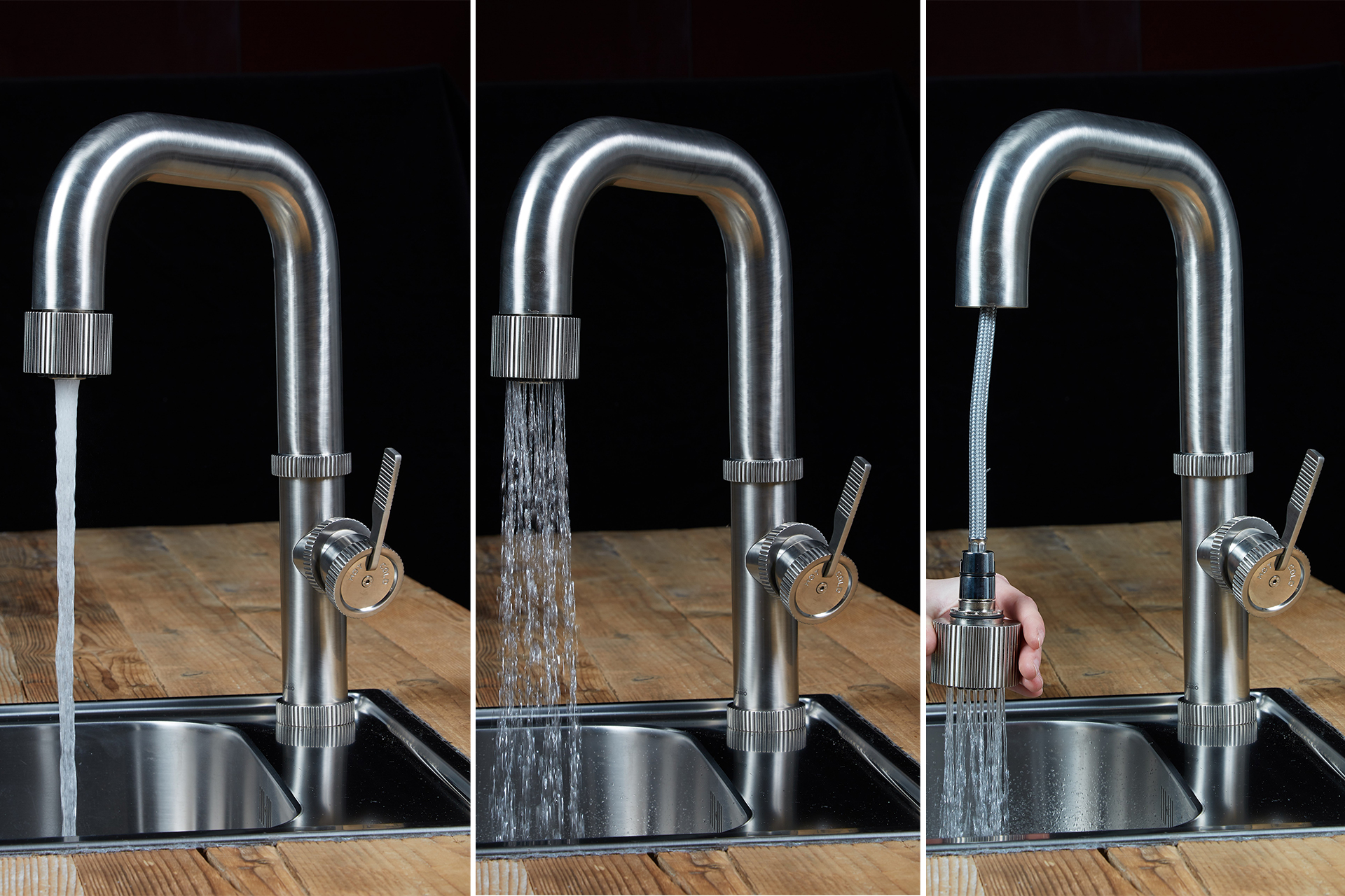 Le mitigeur RIBIO se démarque de tous les autres robinets professionnels. Il assume un look de la tendance « industriel » avec son corps épais et sa manette marquée comme un outil. Cependant, il garde les avantages du mitigeur professionnel avec sa douchette extractible aux multi-jets. En effet, le mousseur de la douchette permet de sortir l’eau en un jet ou en pluie. Retrouver ce mitigeur dans notre catalogue complet catalogue L’Univers de la cuisine.