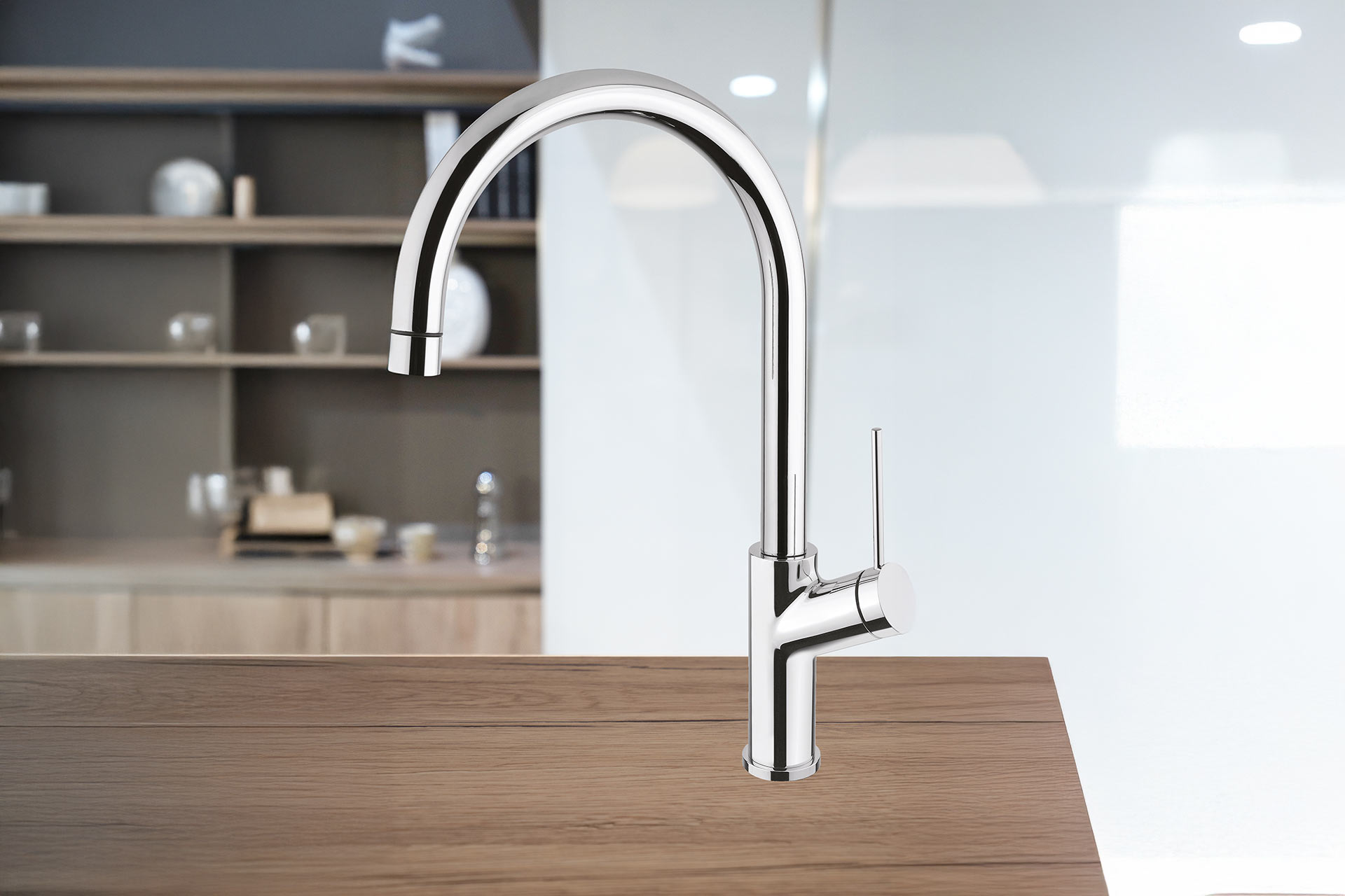 Le mitigeur VODI est intemporel. Son bec en forme de canne est un classique dans l’univers de la cuisine. Et son corps en »V » et sa manette ultra-fine, le rend moderne. Retrouver ce mitigeur dans notre catalogue complet catalogue L’Univers de la cuisine.